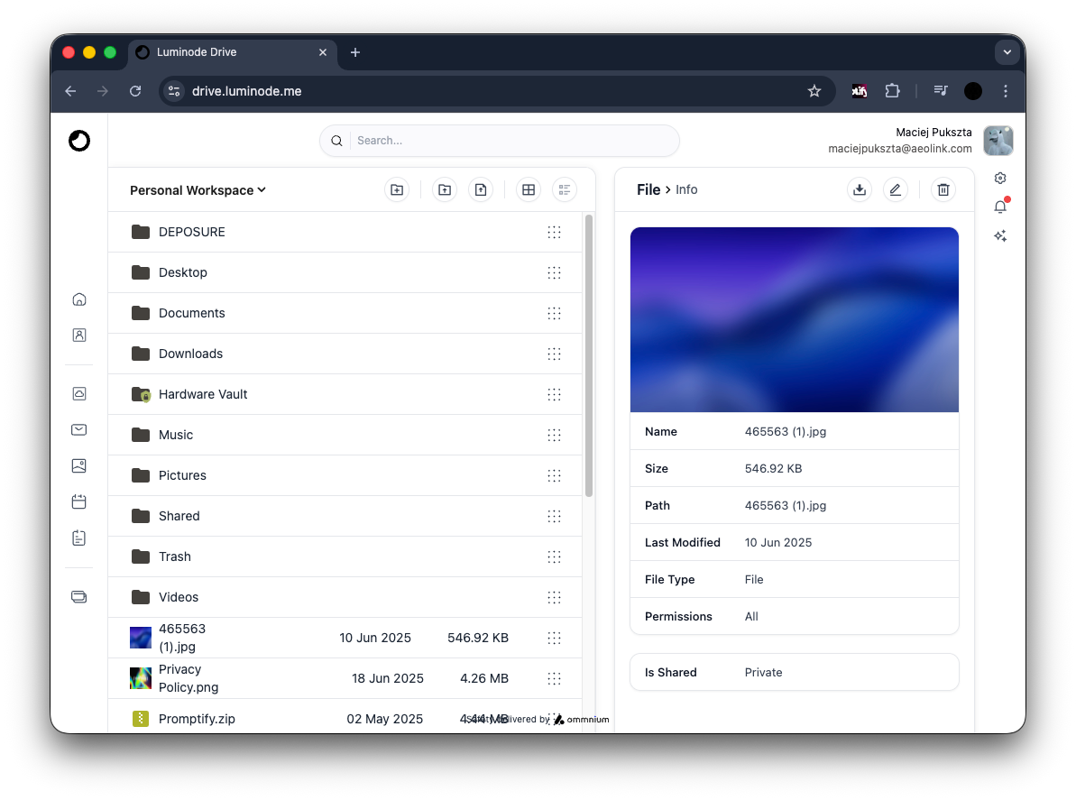 Luminode is a unified platform that brings all the tools you need for seamless daily operations under one roof. Manage your notes, calendar, photo gallery, email, and cloud storage through a single intuitive interface—no more switching between apps. Stay focused on what matters and work without interruption.